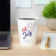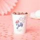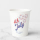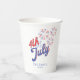 4th of July, fireworks paper cup. Cute red white and blue fireworks theme celebrates Independence Day with style. Classic font and fun bursting fireworks gives these easy to customise paper cups a patriotic aesthetic. You can find matching supplies to this design theme in the 4th of July BBQ Fireworks collection