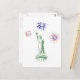 The statue of Liberty with red white and blue fireworks in the background. A cool design for the summer and any 4th of July party.