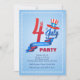 Start your Independence Day celebration with these festive invitations. The blue background hosts a large number 4, uncle Sam's hat and a furling ribbon that says "Independence Day".