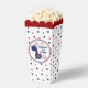 Cute popcorn boxes for 4th of July kids Birthday party with a dinosaur, fireworks and little stars in national colours. Easily personalise the text. - Kate Eden Art