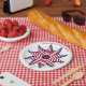 4th of July Patriotic Fun Party Paper Plates. Fun pinwheel design to celebrate your patriotic occasion with 50 stars on the design to represent the 50 states of the United States of America, and 13 stripes on each loop to represent the thirteen original British colonies. Design by Claudine Boerner 2019, All Rights Reserved.