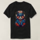 I give wanted to give this a 4 instead of a 5 because these Basic DARK T0shirts run unexpectedly SLIM or Narrow. Which is great if you do not have a potbelly, but I have a paunch. It isn't the shirt's fault that I've got a beer belly. The design and shirt itself is a quality cotton shirt. The color is more of a deep purple, but still a very pretty color. The Basic DARK T-shirts run a bit SLIMMER than the Basic Ts. The neck is a fraction narrower (or seems to be narrower) also. I'm a paunchy middle-aged woman and my neck is 12 inches (31cm) thick and the neckline fell about the same as in the photo of the man, and I had the desire to tug it a bit. So if you're a thick necked man or like loose shirts, be aware these are slimmer shirts. Once I get rid of my lockdown paunch it'll look great. The shirt washed well in cold water with no apparent bleeding. We don't have a dryer, so it hung dry. Did not shrink. Love the colors and the design. The design looks smaller on my shirt than it does on the model on-line. But still, it looks good on the shirt. The printing looks as it does on the model, just the size seems fractionally smaller. Washed garment in cold water, hung dry and design appeared unaffected.