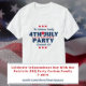Celebrate Independence Day with Our Patriotic BBQ Party Tee! This festive t-shirt showcases bold “4th of July party” lettering in a drop-shadowed design, accompanied by vibrant red stars. You’ll love the easy-to-use template for adding your family name and location. The customisable navy blue script adds a personal touch. Display it on a white t-shirt, and remember that you can adjust the colours to match any background or shirt hue