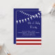 A fun red, white and blue 4th of July party invitation with flags and stripes.
