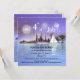 Festive boating invitation for the 4th of July with a painting of a city at the waterfront with a cruise ship and sailboat and fireworks. Perfect for a celebration in a harbour.