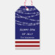 Sparkly twinkle lights light up this red, white and blue sparkler holder, that can easily be tied to a couple of sparklers. This tag is easy to personalise with your family name.