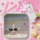 Starfish with flag sunglasses and bikini in beach sand holding an American flag for 4th of July Party