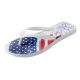 Join the rest of the family and neighbours to commemorate the 4th of July the way grandpa and dad did it back in the day with this cool modern flip flops featuring a bold and bright colours of red, white and blue splashed making the stars and stripes of the USA flag.