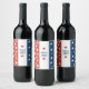 4th OF July Text Red, White & Blue with Stars Wine Label