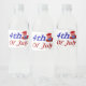 Celebrate the America's Independence Day with this water bottle label featuring 4th of July in 3D blue and red text and Uncle Sam's hat.