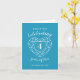 Topaz fourth wedding anniversary card. Celebrating 4 years of love with this simple heart stone effect line art graphic topaz blue personalised greetings card. Customise with your own choice of names or relations and their anniversary dates. 4th wedding Anniversary is traditionally associated with topaz and the heart symbolises love. Background colour can be changed to reflect other topaz stone colours currently the more popular blue topaz. Graphics and design by Sarah Trett for www.mylittleedenweddings.com on zazzle.