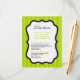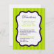 This 4x5 Sized Lime Green & Purple Stripe Ashley Reception and Ceremony Directions Card is perfect for any couple to place inside of their wedding invitations for their recipients to have directions to the ceremony and to where the reception is being held. These do come with standard white envelopes but you can just discard these since your guests will not need these.