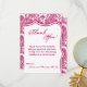 4x5 FLAT Thank You Card Fusia White Damask Lace Pr