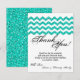 4x5 FLAT Thank You Card Teal Glitter Chevron Strip
