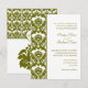 Olive Damask Wedding Invitations Shown with the beautiful paper color showing - but you choose background from almost 200 colors and papers/hues which alter the colors so click on customize and create your one of a kind invitation!