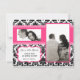 4x5 Save the Date Card - Black Damask & Hot Pink