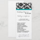 4x9 Wedding Program - Black Damask Teal Turquoise Programme