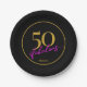 Celebrate your 50th in style with these chic "50 and fabulous" paper plates! Featuring gold text and accents on a black background, with a dash of hot pink script - easily add your name to personalise.
