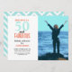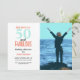 50th birthday photo invitation that you can personalise and send to celebrate turning 50. "50 and fabulous" is set in a popular design in coral, mint, and black. Text in coral and black that you can personalise using the edit menu. Replace the photo with your own. There is a blue chevron pattern on the back that can be changed.