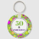 50 and Fabulous 50th Birthday Purple Green Floral Key Ring