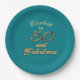 50 and Fabulous Birthday Gold Add Name Teal Blue Paper Plate