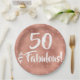 Celebrate the birthdays with a flair.  "50 (age/year can be customised) and fabulous"  in modern brush stroke white text on copper and hearts background.