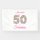 Celebrate your fabulous 50th birthday with this elegant, fun and personalised banner. Number "50" design is floral with the pink colour text. The text can be changed according to your needs. The background design is similar to floral motive of number "50"