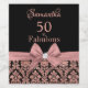 Celebrate your 50th birthday in style with these modern elegant pink rose gold glitter floral damask 50th Birthday Party party custom personalised monogram name script bottle labels. You can personalise your fiftieth birthday party celebration. The words "50 and Fabulous" are set using popular typhography. The first name script is written in a pretty hand lettered calligraphy style font. Please note, this design is a printed photo effect with no real glitter and bow.