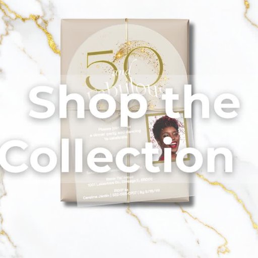 Celebrate a milestone 50th birthday beautifully with a pedestal sign as part of the decor, welcoming the guests. Personalise it with the name of the birthday girl in elegant white calligraphy and one photograph. The words "50 and Fabulous", in gold and white script stand out against a black background with glitter effects. Also customise with the date of the event and the name of the venue or any other brief phrases you choose to include. You can also delete the placeholders if not needed.