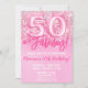 50 and Fabulous Birthday Invitation Pink Glitter 50th birthday party invitation for a 50 year old with modern script writing and fun foil balloons.