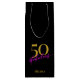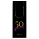 Featuring gold text and accents on a black background, with a dash of elegant hot pink script, this glamourous "50 and fabulous" wine bag is a great way to personalise a birthday gift. Further customise it by adding the name of the recipient.