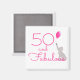 For the fabulous cat lover who is turning 50. A fun design to celebrate this birthday milestone! An image of a light grey and pink cat reaches for a pink balloon as it sails away. The font is hot pink to accent this fun elegant design.