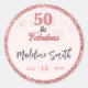 50 and Fabulous Elegant Sparkle Rose Pink Glitter Classic Round Sticker