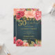 Luxury elegant vintage romantic stylish 50th birthday party invitation template featuring blush pink and peach cream gold glitter peony roses and blooms garlands and golden rustic strings or twinkle lights on a midnight blue chalkboard background. ----- The invite is suitable for spring or summer night, autumn fall rustic or garden vintage outdoor milestones birthday parties - thirty, forty, fifty, sixty, seventy, eighty, ninety, hundred - or other feminine anniversary or celebrations.