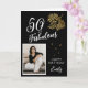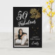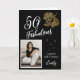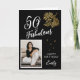 50 and Fabulous Foliage 50th Birthday Photo Card. Text "50 and fabulous", "Happy birthday", name and photo. The card has a beautiful gold foliage on a black background.