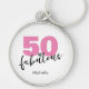 These modern and chic personalised 50 and fabulous gift 50th Birthday party pink keychain. "50 & Fabulous" is written in stylish pink script. You can personalise with your name and number.