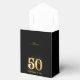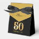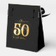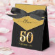 50 and Fabulous Elegant Gold and Black Favour box with ribbon. A Black base with golden text makes it classic and sharp, honouring the birthday girl with her name over 50 and Fabulous on gold dust. The colour theme is easy to match up with other party supplies and decor. This favour box is versatile and classic. Easy to customise the text on both sides.