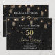 50 and Fabulous Gold Black Marble Mason Jar Lights Invitation