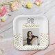 50 and Fabulous Gold Glitter Photo 50th Birthday Paper Plates. The design has faux gold glitter dots and the saying 50 and fabulous is in modern script. Make your own 50th birthday party paper plates for her. Customise with age and insert your photo into the template.