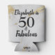 50 and Fabulous Gold Grey Marble with Black Text Can Cooler