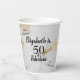 50 and Fabulous Gold Grey Marble with Black Text Paper Cups