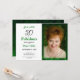 Beautiful modern, metallic green floral 50th birthday invitation you can personalise and send out for your fiftieth birthday party celebration. The words "50 and fabulous" are set using popular typography. Replace the sample photo with your own. Elegant pattern on the back of the card. Image copyright Marg Seregelyi Photography.