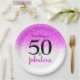 50 and Fabulous Hot Pink Confetti Custom Script Paper Plate
