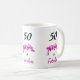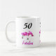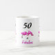 Elegant 50 and Fabulous mug with a pink orchid photo and black and pink text for all who are proud to be 50.