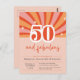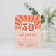 Add a trendy, retro-inspired vibe to your fifty years party with these 50th birthday invitations. Featuring a vibrant retro design and easy to customise with all the celebration details. Peach, pink and red background swirl with the text: "50 and fabulous! Join the celebrations for (name's) birthday".