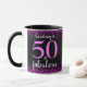 “50 and fabulous.” Be proud, rejoice and usher in 50 with style! This chic, playful, personalised, sparkly pink confetti on a black background coffee mug will help make her birthday special. Matching and coordinating invitations, envelopes, labels, paper plates, napkins, and other items are also available. A great gift for a good friend!