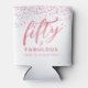 50 and Fabulous White and Pink Glitter Birthday Can Cooler