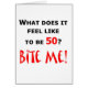 What does it feel like to be 50? Bite Me! Humourous design for the 50 year old who's not happy about turning 50 and a warning sign for others. Makes a great 50th birthday gift.
