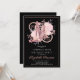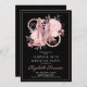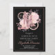An elegant 50 and fab 50th surprise birthday party invitation in a rose gold glitter shimmer with dancing high heeled shoes and roses, and your name in a trendy script typography and a string of pearls integrated into the design and type on a black background. A unique stylish invite for this milestone birthday. 50 and still fab! Coloured type. elegant and chic.