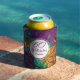 Stylish abstract 50 & FABULOUS celebration can cooler, showing a vibrant design of purples, yellows and greens. Customise your details on the front. Matching stationery and party supplies are available in the ABSTRACT Collection by Berean Designs. Ideal as a gift for Birthdays, and for favour bags.